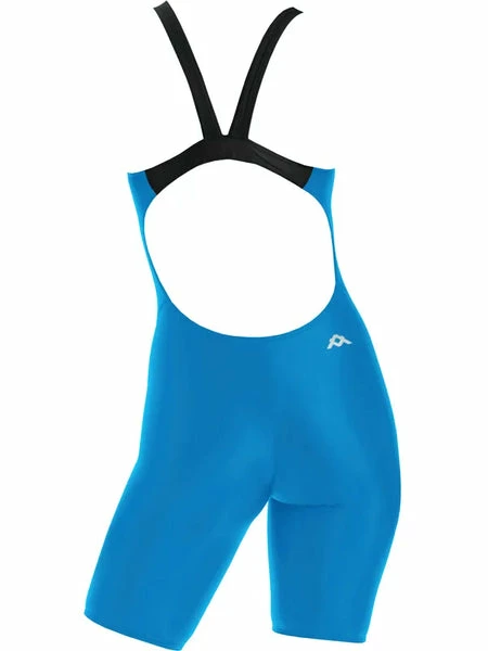 The Azure Kneelength is an entry level racing swimsuit that is also suitable for training. The kneelength has been engineered to fit the needs of competitive and active swimmers, as well as triathletes and open water swimmers. The wide shoulder straps and back band are placed between the shoulder blades allowing maximum freedom and ease of movement whilst swimming. They also provide added support to the bust area. The wide open back follows the natural contours of the body providing an ergonomic fit and superior comfort.Â