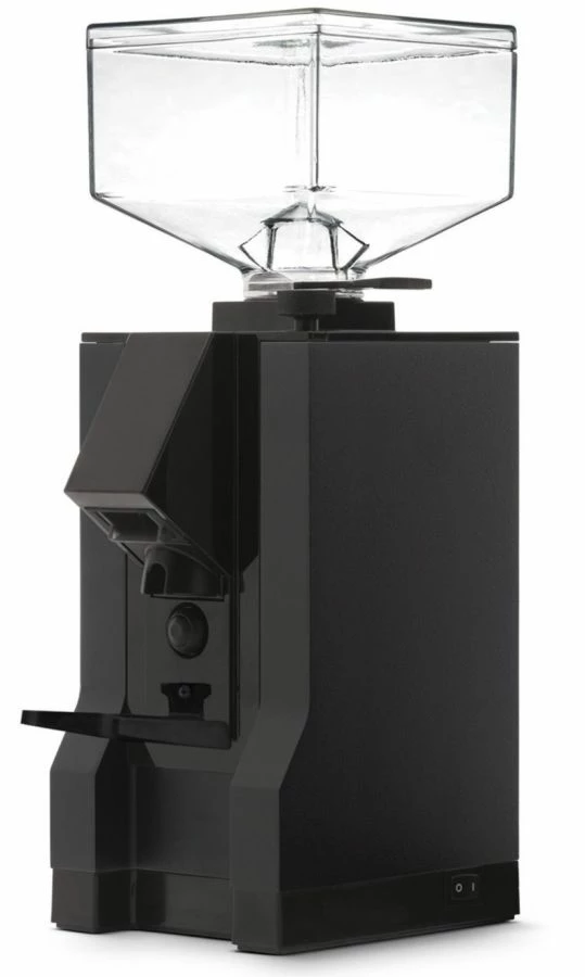 Eureka Mignon Manuale 15BL semi-professional espresso coffee grinder with 50 mm hardened grinding discs, patented infinitely variable regulation of the grind, one-hand operation via push-button, housing in matte black.