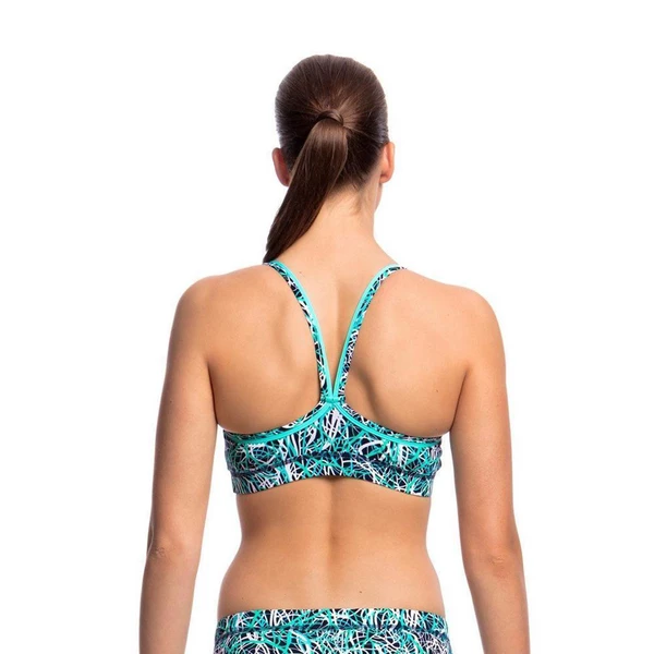 Firm fitting sports crop top with racer back and double strap bind finish with wide elastic for under bust support to give you the support you need in a sports top. Sold as separates and available in sizes 8 – 14.