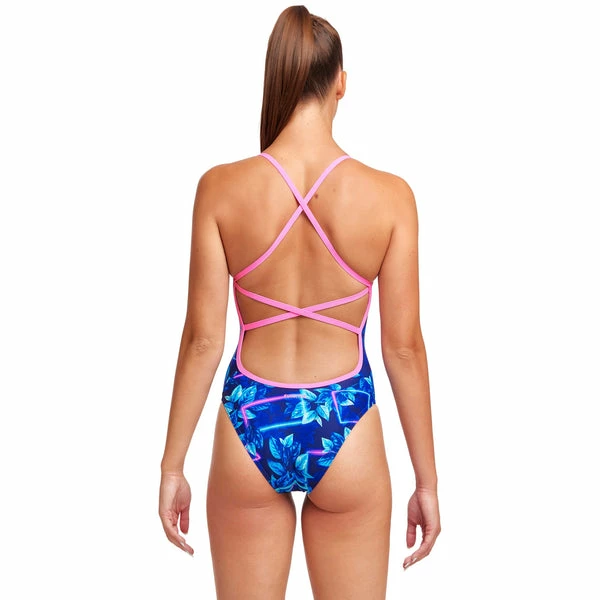 Funkita’s strappiest one piece yet! Single strap binds that criss cross down your back with a moderately high cut leg and full front lining. Available in sizes 8 – 16.