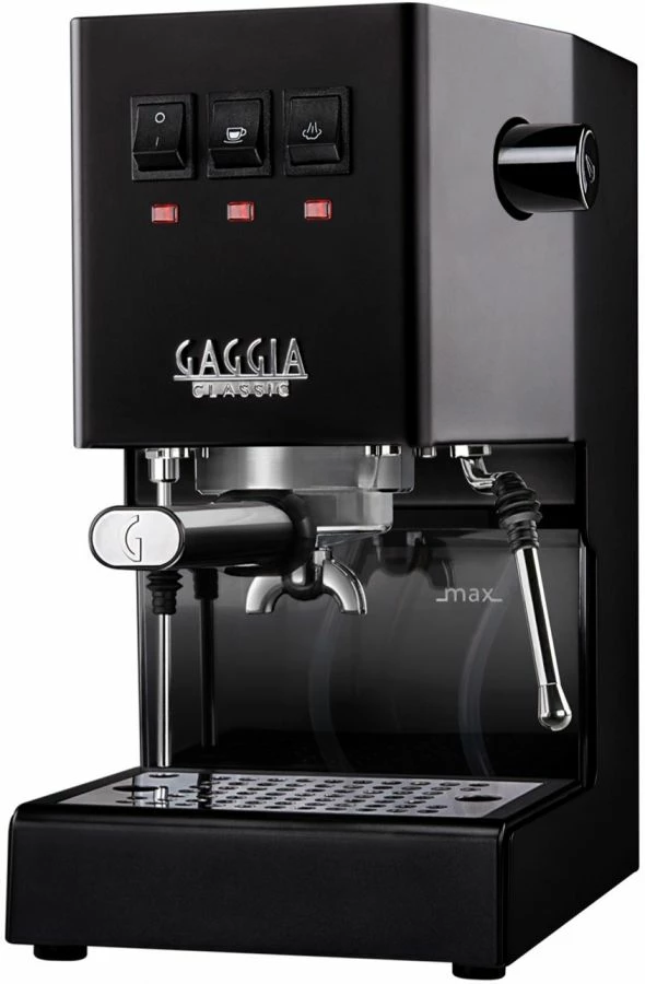 The New Gaggia Classic Espresso Machine (Pro Classic) has the same size, style and weight as the professional machines; the chromed brass group and filter holder are designed to guarantee optimal coffee temperature throughout the entire brewing process and an improved in-cup quality.
