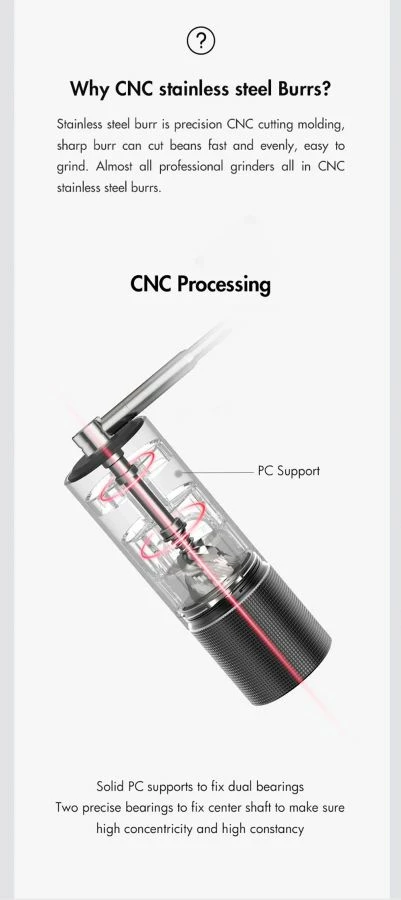 - Patented point to Point coarseness adjustment to adjust coarseness precisely and meet espresso, moka pot, pour over and siphon, French press etc. (Espresso settings begin around 8 clicks backward from the start point).