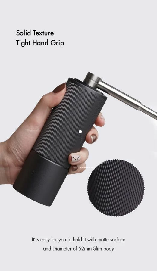 The Chestnut C2 grinder base is made of metal and screws easily into the body of the grinder. The unique anti-slip textured makes this burr coffee grinder easier to hold.