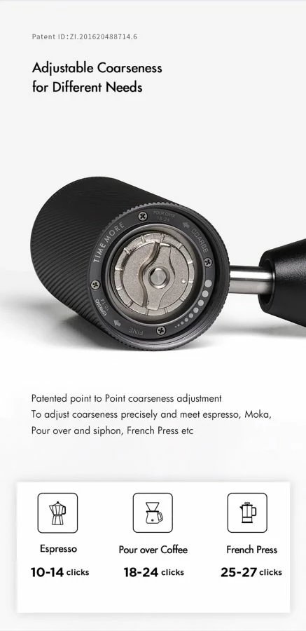 Fold and store, fold and travel, or just fold and unfold. The tried and tested handle from the Timemore Nano has now become part of the standard grinder range.