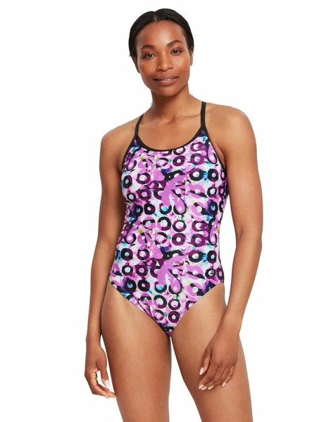 Have complete freedom of movement in the water with the Zoggs Loopy Sprintback One Piece. A sporty, cut away style that is perfect for younger adult swimmers looking for a fashion swimsuit that performs in the water. It is also 100% chlorine proof, and made with our eco friendly, Ecolast+â„¢ fabric, made with recycled plastic bottles.